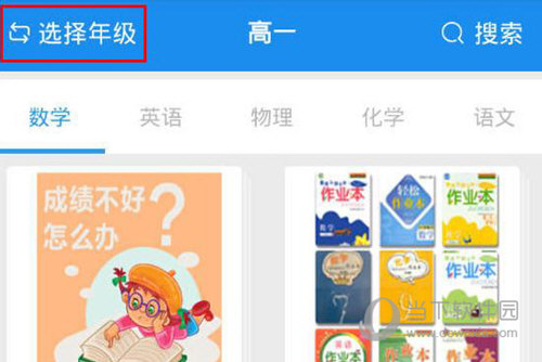 1.首先打开我们手机中的作业大师APP,在首页左上角选择我们的【年级】