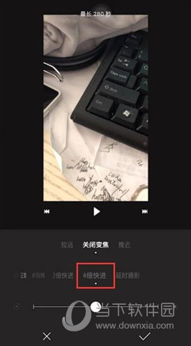 2、然后在点击视频条,选择效果,就可以看到变速功能了 ,用户再根据视频时间长度选择快进倍速,点击对勾即可完成视频加速操作了。