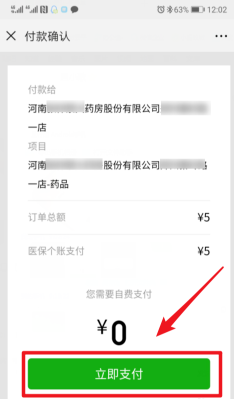 3.在支持电子医保卡的药店,也可以使用微信直接扫码药店医保卡的二维码来进行买药。扫码后,点击支付的选项。