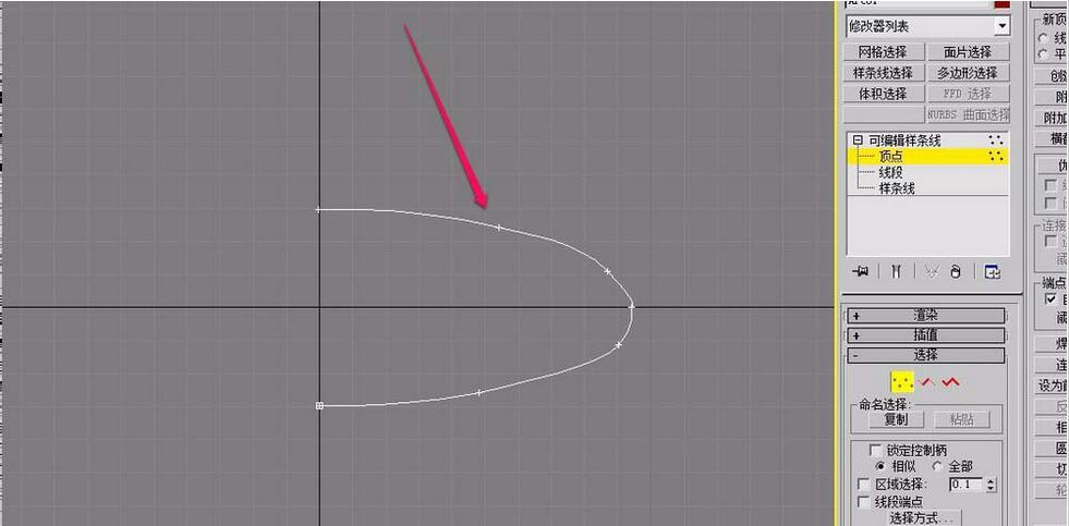 选择“可编辑样条线”修改器中的“顶点”选项。