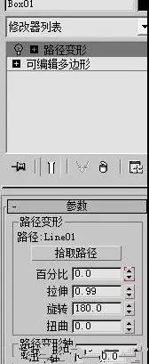 然后再履带上添加一个路径变换修改器,调节调度,拉伸比例,根据长度调节之前履带的节数。