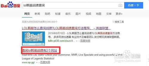 1、首先我们打开任意一个浏览器,然后在搜素栏输入lol韩服战绩查询。点击进行搜索,然后选择下图的那个。