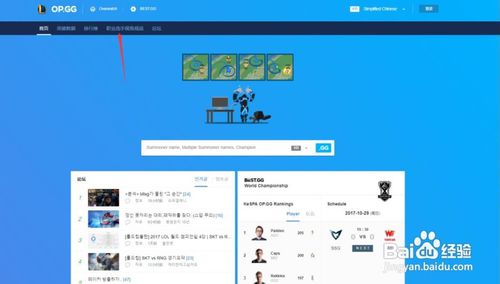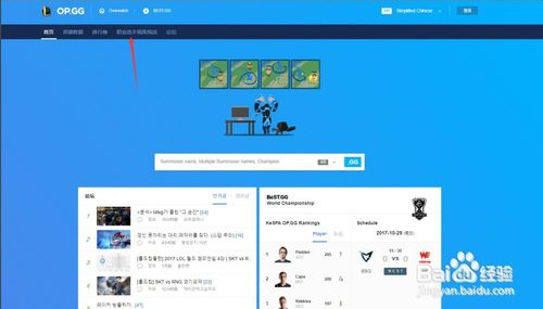 2、进入这个网站以后,在如图位置输入你想要查询的lol韩服玩家名字输入即可查询。