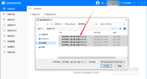 1、打开视频转换器把腾讯视频下载好的qlv格式的视频添加到视频转换器中,添加的时候可以点击软件左上角的添加文件或者添加文件夹按钮进行添加,也可以直接把需要转换的视频拖拽到软件中。