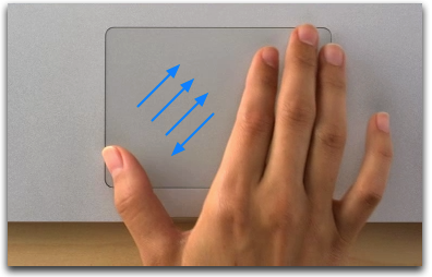 3、在触控板上使用拇指和另外三个手指合拢手势。