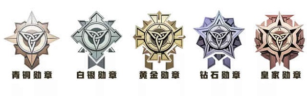 2、荣誉勋章分别有青铜、白银、黄金、钻石、皇家五个英雄勋章等级。