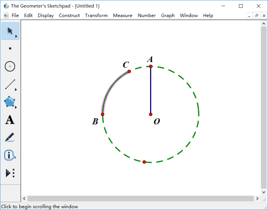 ②标记点O为旋转中心,将点A绕点O旋转90°,得点B,在A、B间的圆周上任取一点C,依次选中⊙O、点C、点B构造弧CB;