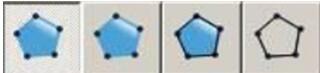 多边形工具的默认状态是画多边形内部工具,若用鼠标左键该工具不放,弹出多边形工具选择板,依次是“画多边形内部”、“画多边形内部及边”、“画多边形的边”。