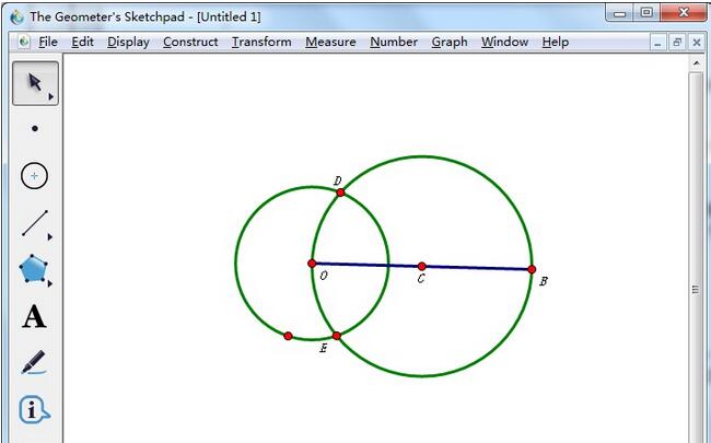 4.用“选择”工具单击两圆相交处,构造出交点D、E,如下图所示;