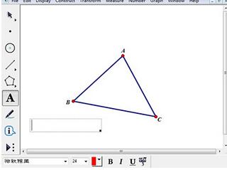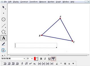 步骤一 打开几何画板软件,需要插入数学符号时选择左侧工具栏“文本工具”,在画板上任意位置双击鼠标弹出文本框,此时在画板的下方会弹出文本工具栏,如下图所示。