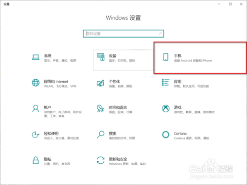 2、进入以后可以在设置界面查看到手机,点击进入。