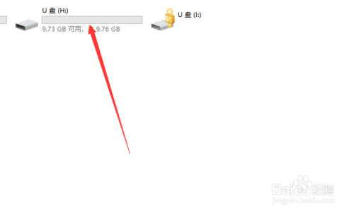1、把无法访问的U盘接入电脑,然后在双击打开此电脑,找到U盘的盘符记下。
