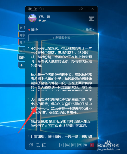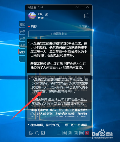 2、接着敬业签便会处于排序的模式,然后选中你要重新排序的内容,长按鼠标左键便能拖动内容,然后将内容拖至正确的序列,再覆盖在其上面即可;
