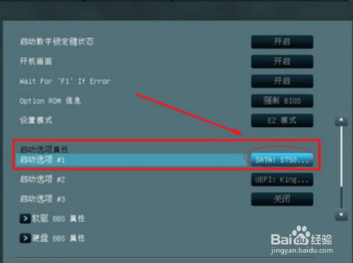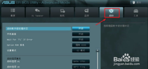 3、用键盘“上下方向键”切换到“启动选项#1”,按“回车”确认。