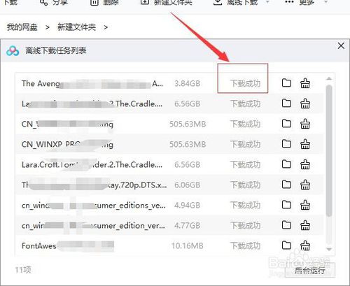 4、接着,在弹出的离线下载任务列表中,可以查看当前下载任务的下载进度,等待百度网盘自动下载完成。如图: