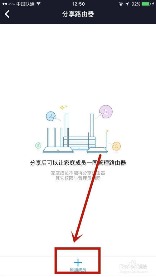 4、在分享路由器页面,点击并进入下方的 +添加成员 选项。