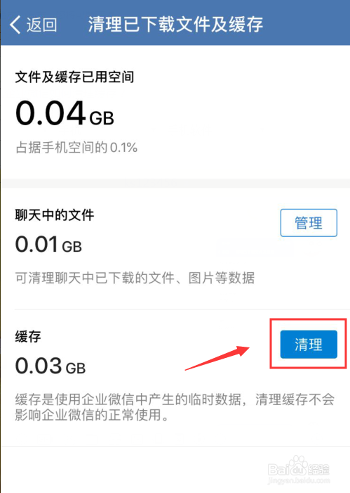 6、进入清理已下载文件及缓存,点击缓存后面的清理;