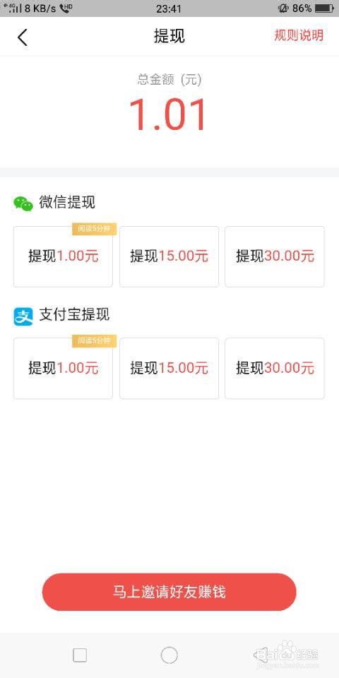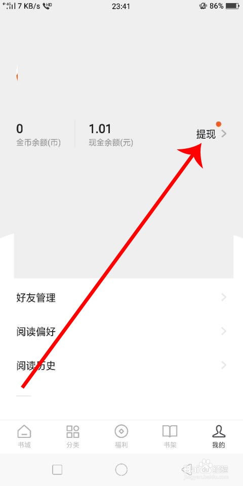 5、最后只要余额达到提现要求就可以提现,提现1元需要阅读小说5分钟。如下图所示。