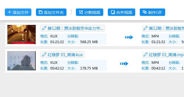 打开迅捷视频转换器,添加kux视频。软件支持批量添加视频文件。
