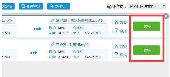 设置完分辨率以后,点击「转换」按钮,视频就会开始进行转换。