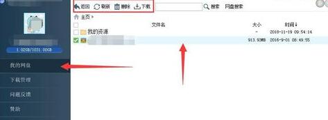登录到主窗口,我的网盘右侧就可以看到网盘内的文件,选中文件可删除或下载,若显示不全可尝试刷新。
