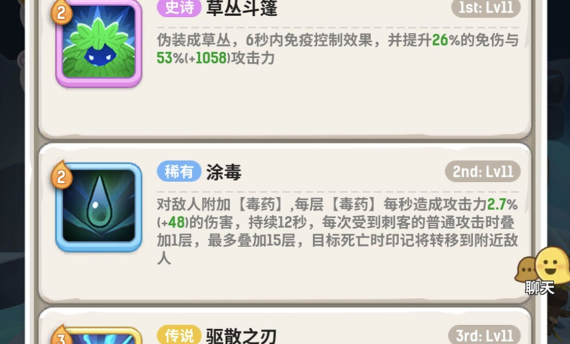 刺客:草丛斗篷、荼毒、驱散、毒刃