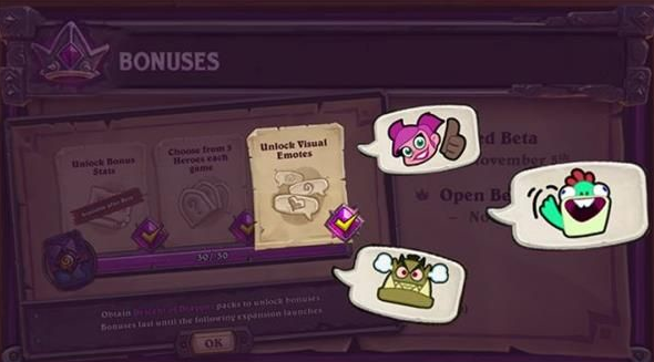 玩家购买30包最新的扩展卡牌包将解锁对战中所有人可见的独特酒馆战棋表情。