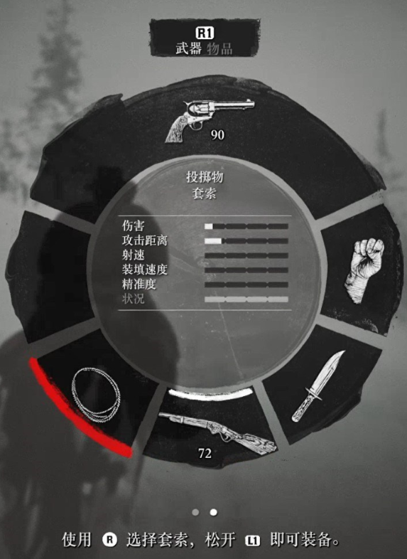返回途中,遇到科尔姆的手下,亚瑟要独自活捉他。在武器轮盘里选择套索,追上去套住他。