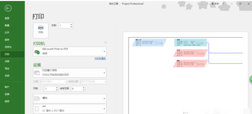 点击上方菜单栏中的文件-打印,就可以进入到打印预览的界面中,可以看到此时本网络图已经分页成6页可以分别进行打印了