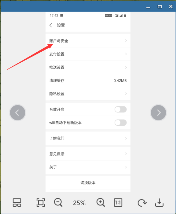 2、在设置页面上点击打开“账户与安全”页面。