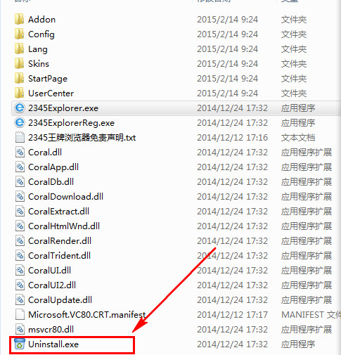 方法三:我们右击2345王牌浏览器===打开文件夹位置===我们在安装位置点击“uninstall”