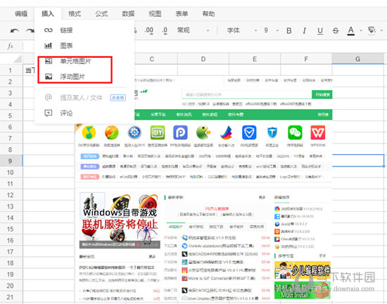 4、如果你想要往表格中插入图片,只需选中单元格,接着在插入;栏中选择单元格图片;或浮动图片;选项,最后选择想要插入的图片即可,如下图所示: