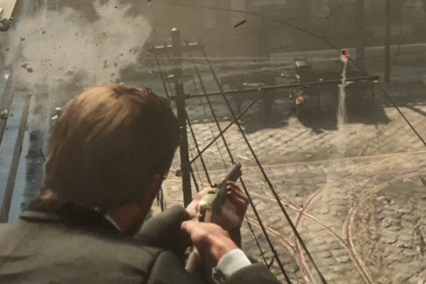 来到屋顶后继续战斗,消灭地上和对面楼里的警察。注意优先击杀马车上的重机枪手。