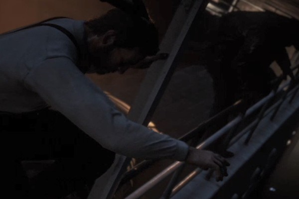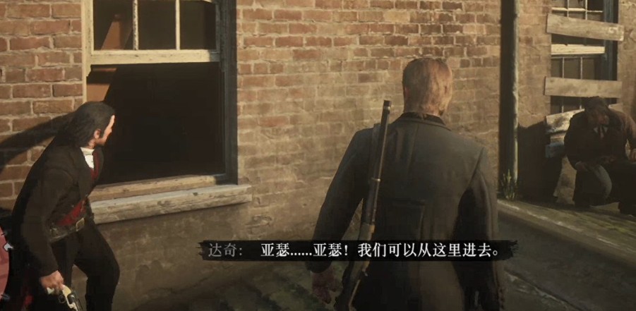 清理完敌人后触发剧情,约翰被捕,亚瑟提议带着蓝尼去找一条能从屋顶走的逃跑路线。