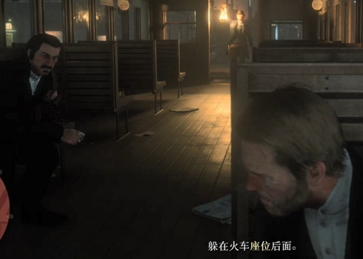 之后进入潜入流程,先跟着德奇爬上火车。并根据德奇的提示躲在火车座椅后,规避警察的巡逻。