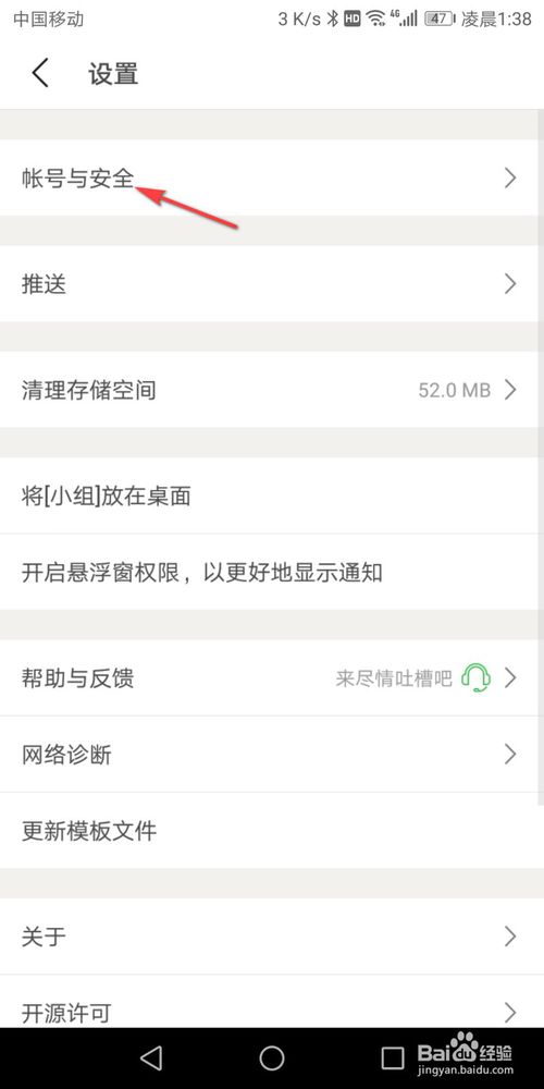 3、进入设置以后点击账号与安全。