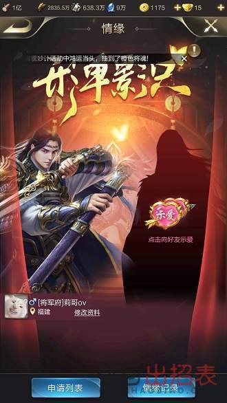 玩家可以选择好友度超过30的,进行示爱,而且玩家要选择情缘值高的,这样称号是会不断的变化的。