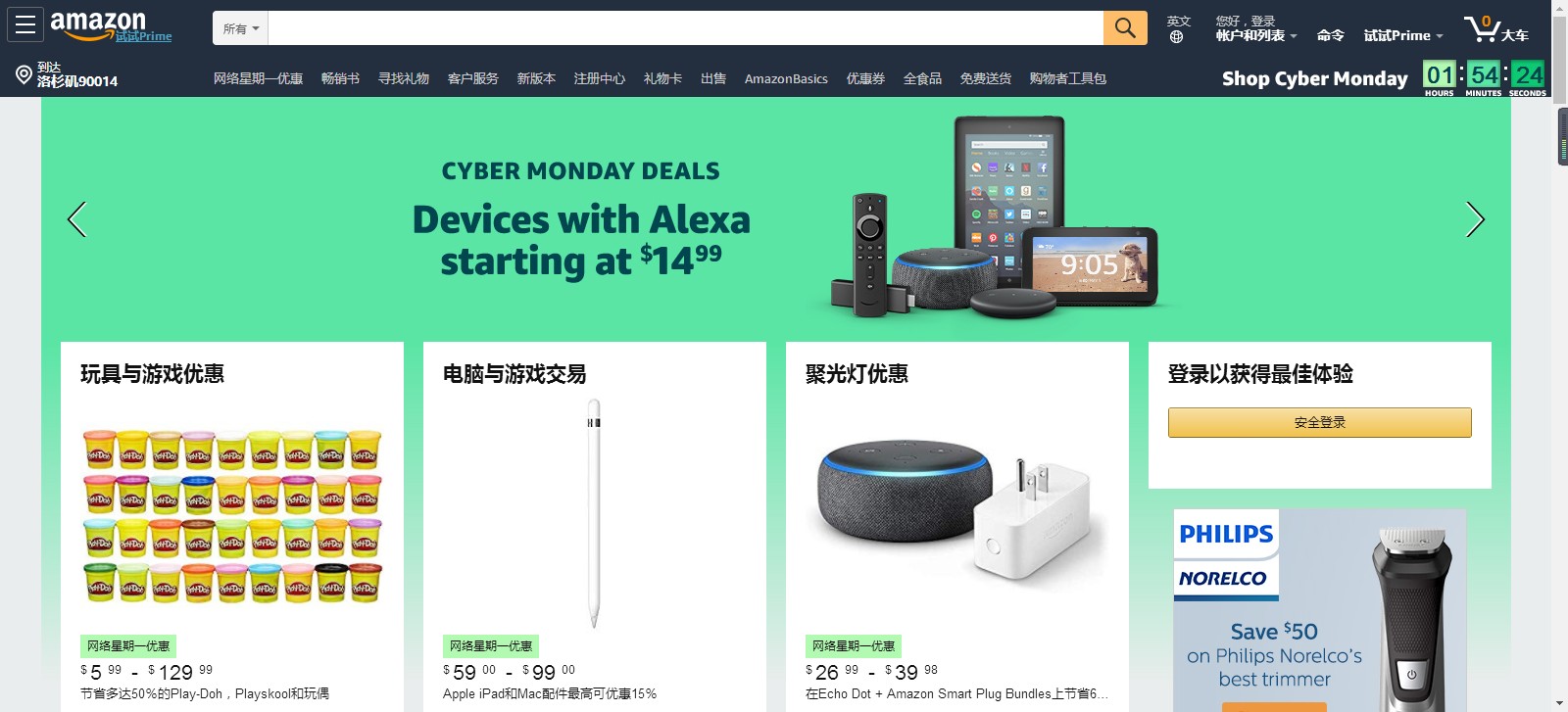 首先,在浏览器中打开Amazon官网,或者在搜索框输入“亚马逊”进行搜索并点击进入官方网站:
