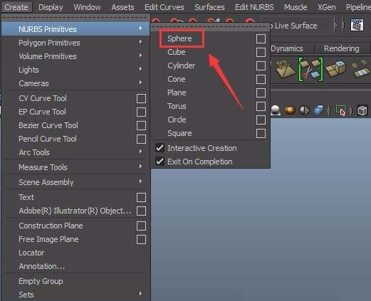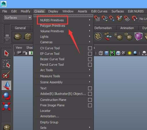 之后在菜单里找到create菜单里的NURBS primitives选项