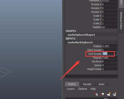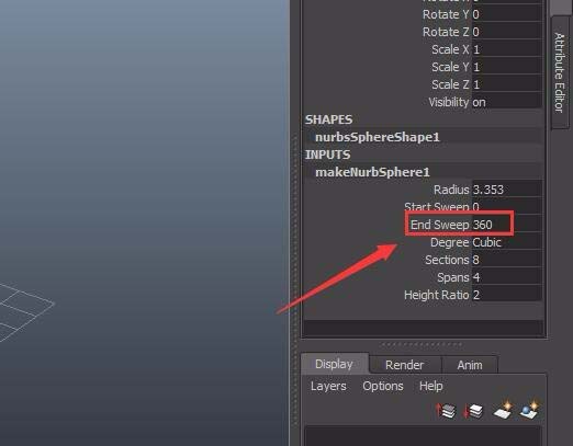 选择绘制的球体,再在右侧找到end sweep选项