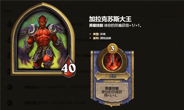 炉石传说是一款人气火爆游戏,加拉克苏斯大王在炉石传说中是老朋友了,作为最早的术士英雄牌,旋转泯灭威风十足。那么今天小编就给大家带来炉石传说加拉克苏斯大王技能属性玩法介绍,感兴趣的小伙伴快来看看吧。