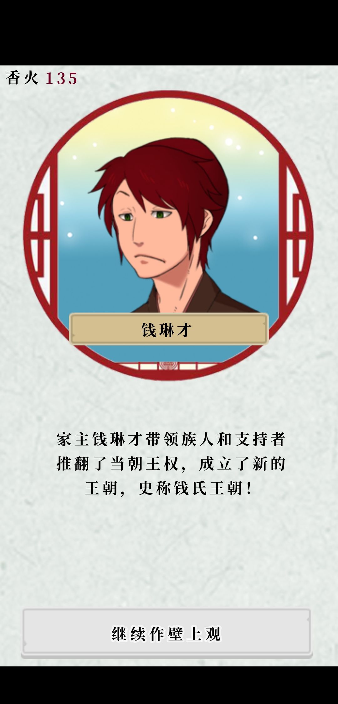 只有隐世大族才能做的存活数百年之久,除了隐居和商贾另外两个不要点,然后有香火就点这两个,不要分家,人控制在20人左右,就算家主死了也有后人可以继承属性。