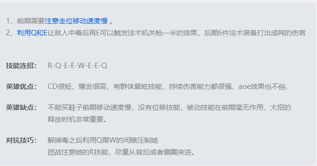 在短暂的延迟后,卡西奥佩娅用毒素引爆一片区域,并且如果命中了一名敌方英雄,就会获得移动速度加成。
