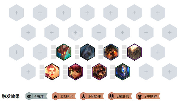 解析:正如title标题所言,这是海洋法另一套玩法,利用3地狱火进一步提升输出能力,3召唤使则是加强前排的承伤能力,形成一套后期更为强势的搭配。