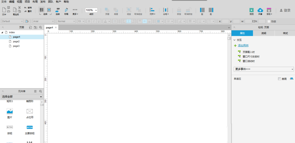 打开Axure RP 8.0,查看基本元件移动的效果,如图所示: