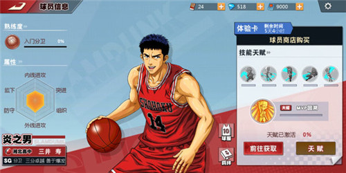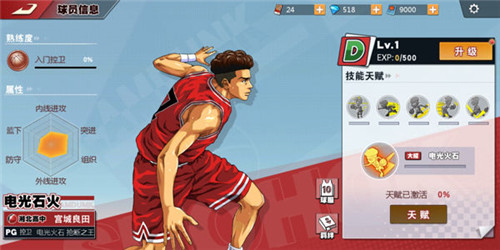 宫城是湘北的控卫,是动画中的主角人物之一。虽然日常麻烦不断,但是球技却相当出色。宫城拥有控卫最重要的属性——“速度”,宛如精灵一般穿梭在球场上,令人防不胜防,被誉为“电光火石”。在游戏里,他的这个技术特点也被完美继承,除了利用速度传控并且断球,宫城的过人和假动作上篮技术也很不错。阵容上我们可以选择樱木加宫城的双篮板战术,搭配赤木打快速防反。