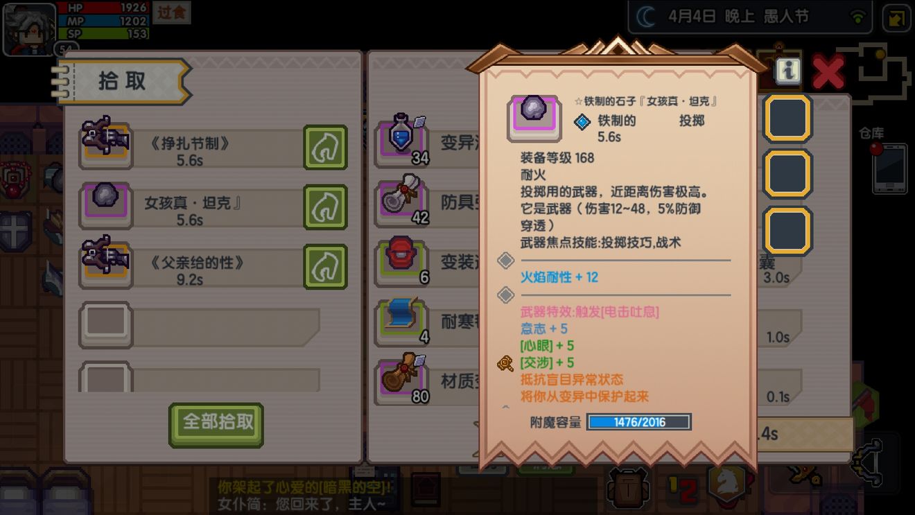 属性效果:收集路边像铁一样硬的小石子作为武器,被投中的确很疼。