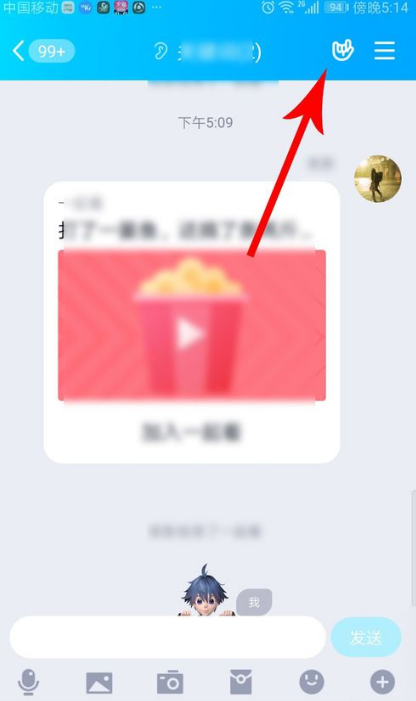 1、点击打开手机的qq群聊页面,然后点击右上角的手的图标。