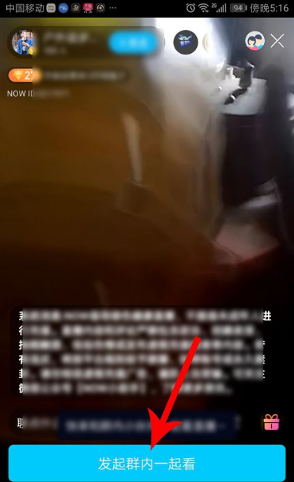 4、然后在直播页面上点击下面的“发起群内一起看”。