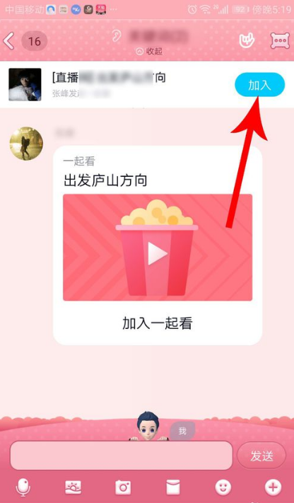 5、然后将一起看的链接发到群里,好友们点击上面的“加入”即可加入一起看的行列中。